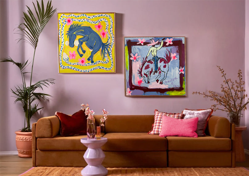 Every artwork is made to bring colour into your space in a big, loud, beautiful way. They’re made to wake up a wall, to take up space, and not here to be subtle.