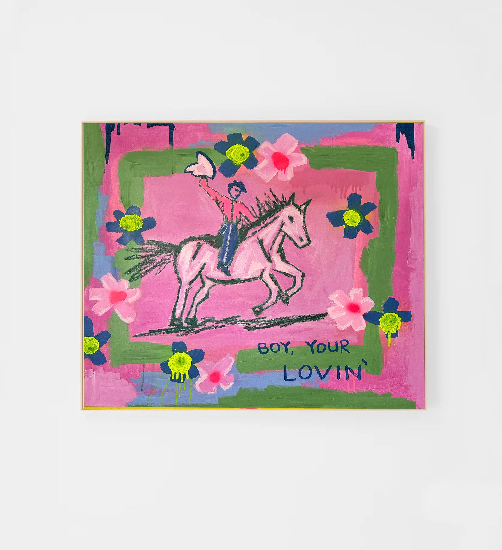 Acrylic, Oil Pastel and Spray Paint mixed media on canvas 90.15cm x 90.15cm.